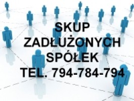 Zajmujemy się skupem czystych niezadłużonych,jak i zadłużonych zarejestrowanych w KRS spółek. Oferujemy pokrycie kosztów notarialnych oraz załatwienie wszystkich formalności związanych z procesem przejęcia spółki. Kupujemy Spółki Zadłużone jak i Czyste bez zobowiązań. 794-784-794 email: deberg@skupspolek.com www.skupspolek.com
