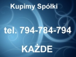 | Zajmujemy się skupem czystych niezadłużonych,jak i zadłużonych zarejestrowanych w KRS spółek. Oferujemy pokrycie kosztów notarialnych oraz załatwienie wszystkich formalności związanych z procesem przejęcia spółki. Kupujemy Spółki Zadłużone jak i Czyste bez zobowiązań. 794-784-794 email: deberg@skupspolek.com www.skupspolek.com |